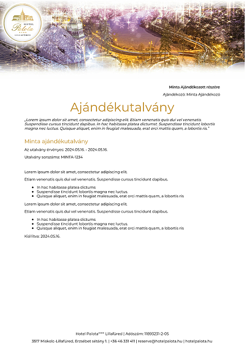 Az utalvány kiemelt- és ünnepi időszakokban, továbbá jegyzett állami iskolai szünetekben nem használható fel.